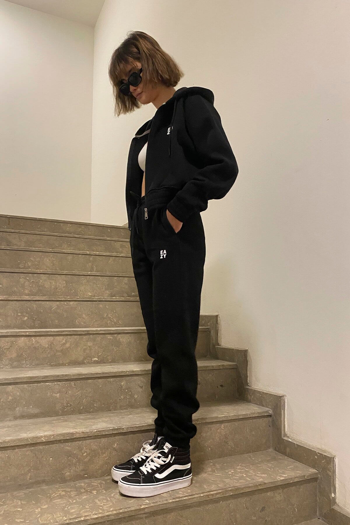 Kadın Basic Siyah Lastikli Premium Kışlık Eşofman Takımı